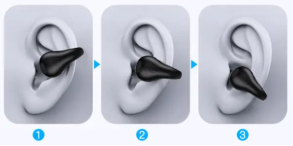 1. Conducción ósea ligera: vibra suavemente cerca del cartílago para transmitir sonido sin tapar la oreja.